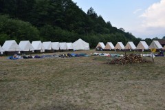 Tábor Bystřička I. turnusLetní tábor na Bystřičce (I. turnus 5. 7. - 25. 7.) začal letos pro děti netradičně už v neděli. Děti přijely do tábora natěšené na nová dobrodružství a kamarády do malebného údolí řeky Bystřice a daleko od průmyslového ruchu měst. Po přesunutí dětí a jejich větší než velké polní (při němž se vedoucí a i auta pěkně zapotila) od autobusu do tábora nečekaly na děti, k jejich velkému překvapení, připravené stany, do kterých by se děti mohly ihned rozprchnout, ale čekala je první bojovka – postavit si stany. Některým dětem bylo možné přečíst zoufalství na tváři, jiným zase úsměv, když se pomalu vrhly na zdolávání této těžkosti. Nakonec, za hojné asistence vedoucích, měly děti po chvilce hotovou střechu nad hlavou. |